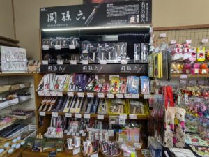 お土産コーナーには、包丁やハサミ、爪切りといった関の孫六ブランドの刃物が並び、品質が高そうです。